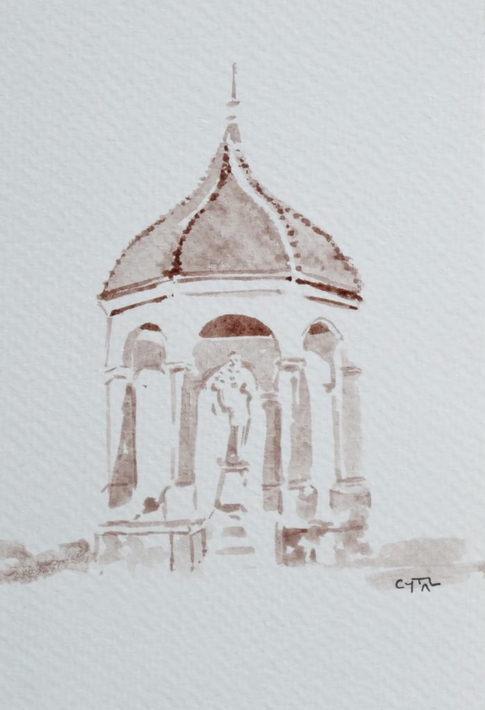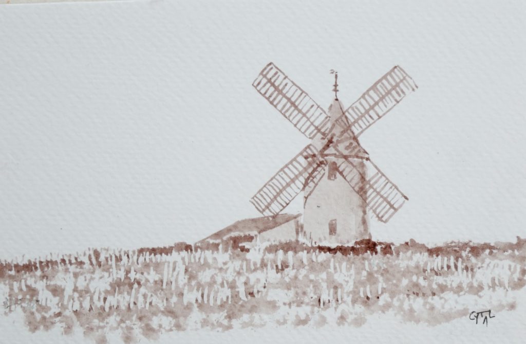 Réaliser une aquarelle au vin est pour moi une découverte sérenpidienne. J’ai trouvé très intéressante la teinte sépia d’une aquarelle tachée accidentellement avec du vin, et lorsque j’ai voulu reproduire cette teinte avec des pigments classiques, je n’y suis pas arrivé. C’était en novembre 2014, et tout naturellement, j’ai abandonné l’idée d’imiter la couleur du vin avec des pigments…
